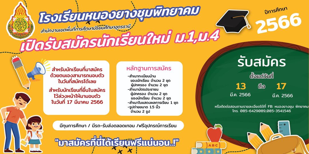 " ประชาสัมพันธ์ โรงเรียนหนองยางชุมพิทยาคม รับสมัครนักเรียนใหม่ตั้งแต่วันที่ 13-17 มีนาคม 2566 "